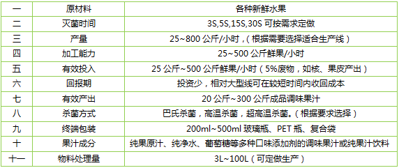 小型果蔬汁飲料生產線工藝流程跟大型工業化生產線是完全一樣的。果汁生產嚴格安裝標準制造工藝進行。終端產品符合食品GMP衛生條件要求。產品灌裝、包裝形式可按商場零售要求配置。